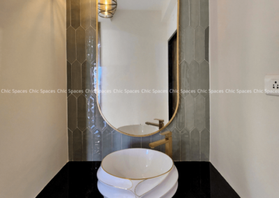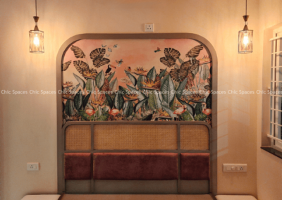 Step into the pinnacle of personalized luxury in this exquisite 3BHK home. Teakwood partitions infused with bespoke detailing add a touch of individuality throughout, while a charming false ceiling enhances the dining area’s allure. The kids’ bedroom delights with a playful curvy headboard and whimsical wallpaper, while the master bedroom exudes richness and elegance at every turn.